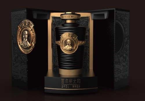 不仅呈现了百年前的茅味原香、在品质上一脉相承,而且在包装设计上也费尽匠心,以立体浮雕铭刻茅酒始祖石荣霄经典形象,波浪形瓶身象征孕育美酒的赤水河,带来极致美感,瓶身金色腰带书写百年荣太和的历史辉煌,盒面浮雕插画涵盖了荣太和百年历史的重要事件,将一个家族百年前的荣光跃然盒上,也寓意在历史长河中,荣太和烧坊石荣霄的文化历史源远流长,尊贵又厚重。