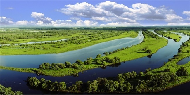 绿色虎林,生态康养。虎林夏季风和日丽,人间清凉;完达山脉古树参天、群峰林立;乌苏里江沙鸥云集、渔舟唱晚;月牙湖野生荷花馥郁芬芳、诗意绽放;神顶峰日出、云海,波涛壮阔;万亩良田碧浪稻花,生机盎然;珍宝岛湿地水天一色、五彩斑斓。